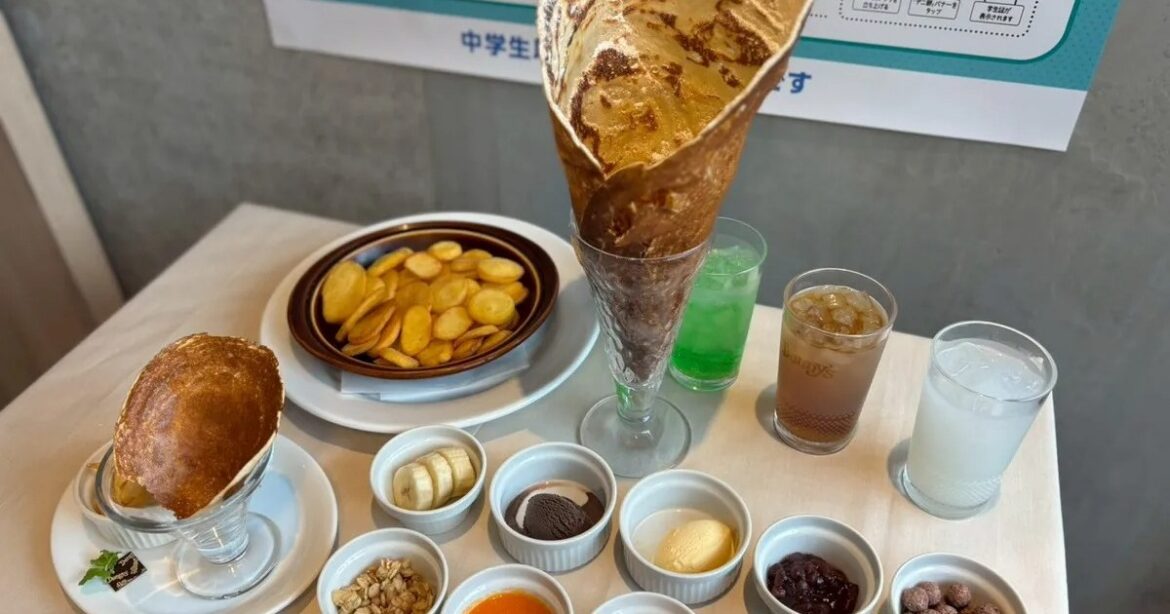 The regular price of 880 yen for these menu items drops to 500 yen when you show your student ID. While it’s possible to order the crepe as a standalone item, if you order it as part of this combo you can choose two toppings from a selection of 25, with any additional toppings costing an extra 55 yen each.