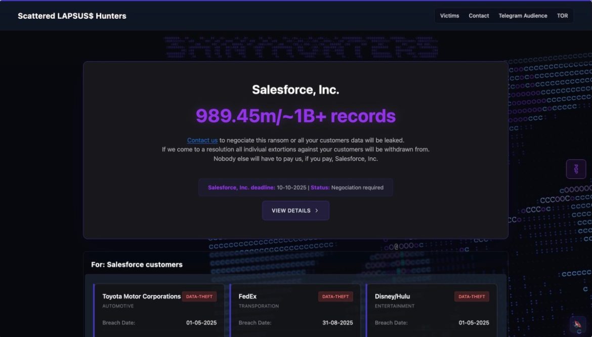 A notorious predominantly English-speaking hacking group has launched a website to extort its victims, threatening to release about a billion records stolen from companies who store their customers’ data in cloud databases hosted by Salesforce.