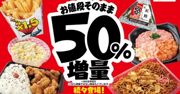 Japanese convenience store chain hops on the boosted-volume-for-the-same-price train for a limited time.