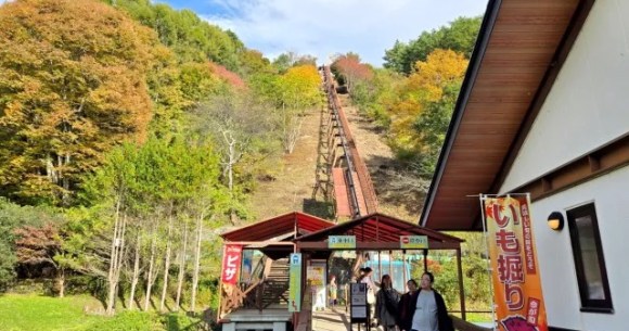 According to the guide on board, this rail’s incline is as steep as a ski jump. It’s a great way to experience the thrilling point-of-view of a skier without having to strap on a pair of skis, and visiting during the autumn leaf-viewing season makes for a colourful journey.