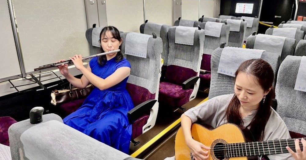 On Saturdays, Sundays, and holidays in November, among the trains’ Green Car passengers will be a pair of professional musicians, performing a medley of songs on the flute, violin, acoustic guitar, clarinet, harp, saxophone, mandolin, and viola. While the instruments are primarily classical, the songs they play aren’t limited to traditional orchestral pieces, as some of the concerts have included music from the anime films of Studio Ghibli.
